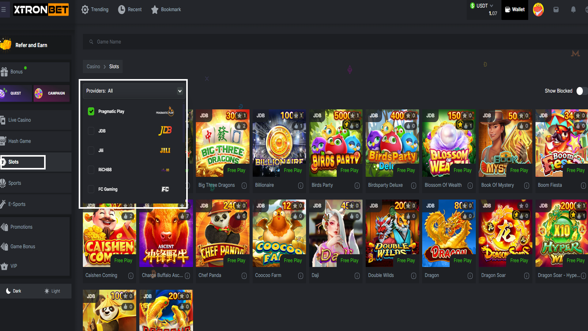 XTRONBET collaborates with various top game providers that offer high-quality slot games with stunning graphics and exciting bonus features. Some of the slot game providers available at XTRONBET include: