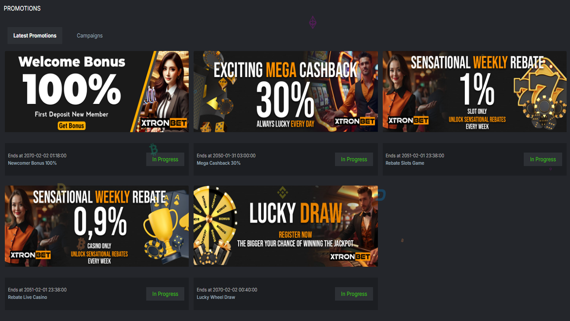Once logged in to your account, you can access the ongoing promotions on the promotions page or a dedicated section of the XTRONBET site.