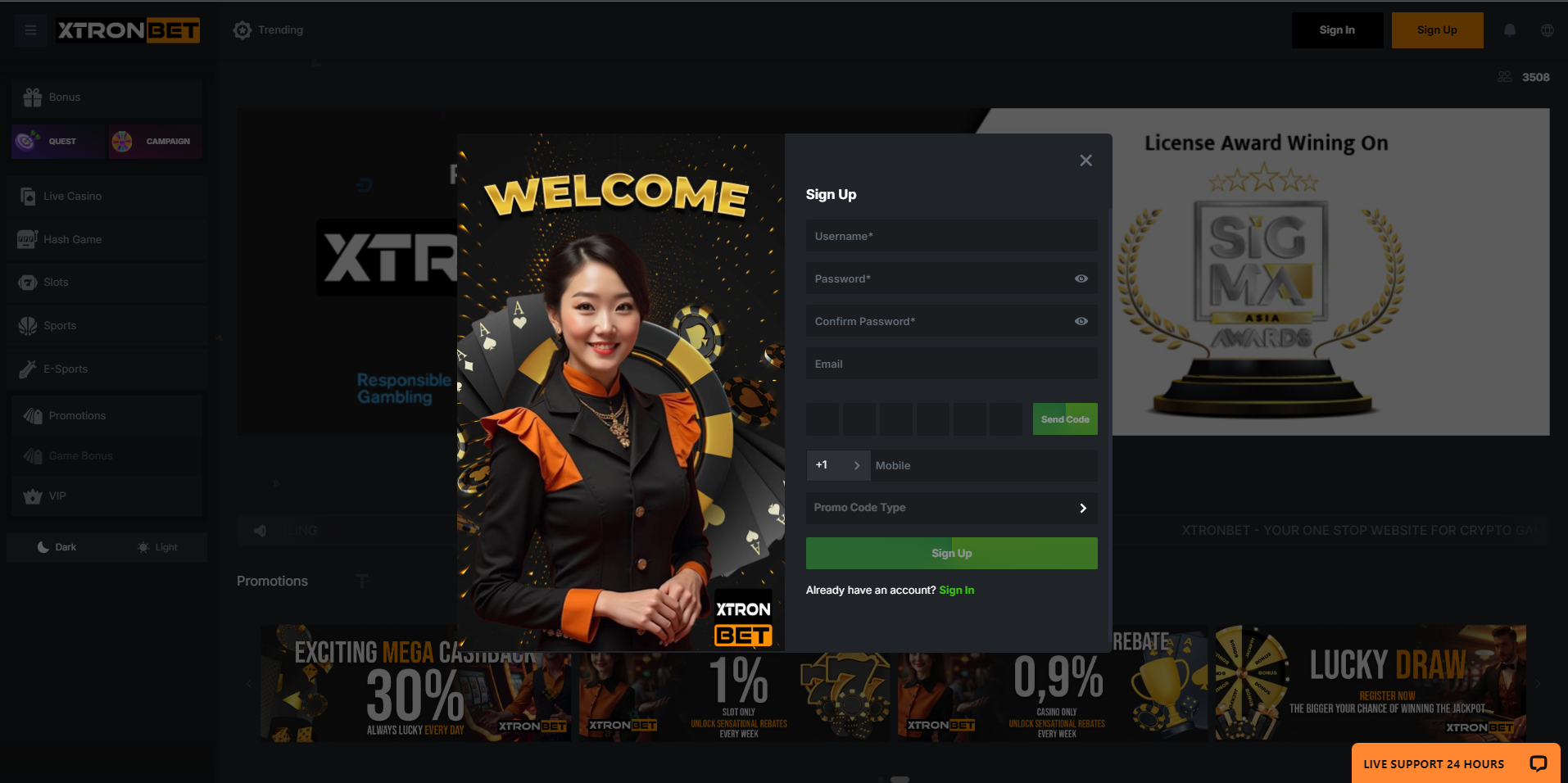 Here is a step-by-step guide to creating an account on XTRONBET: