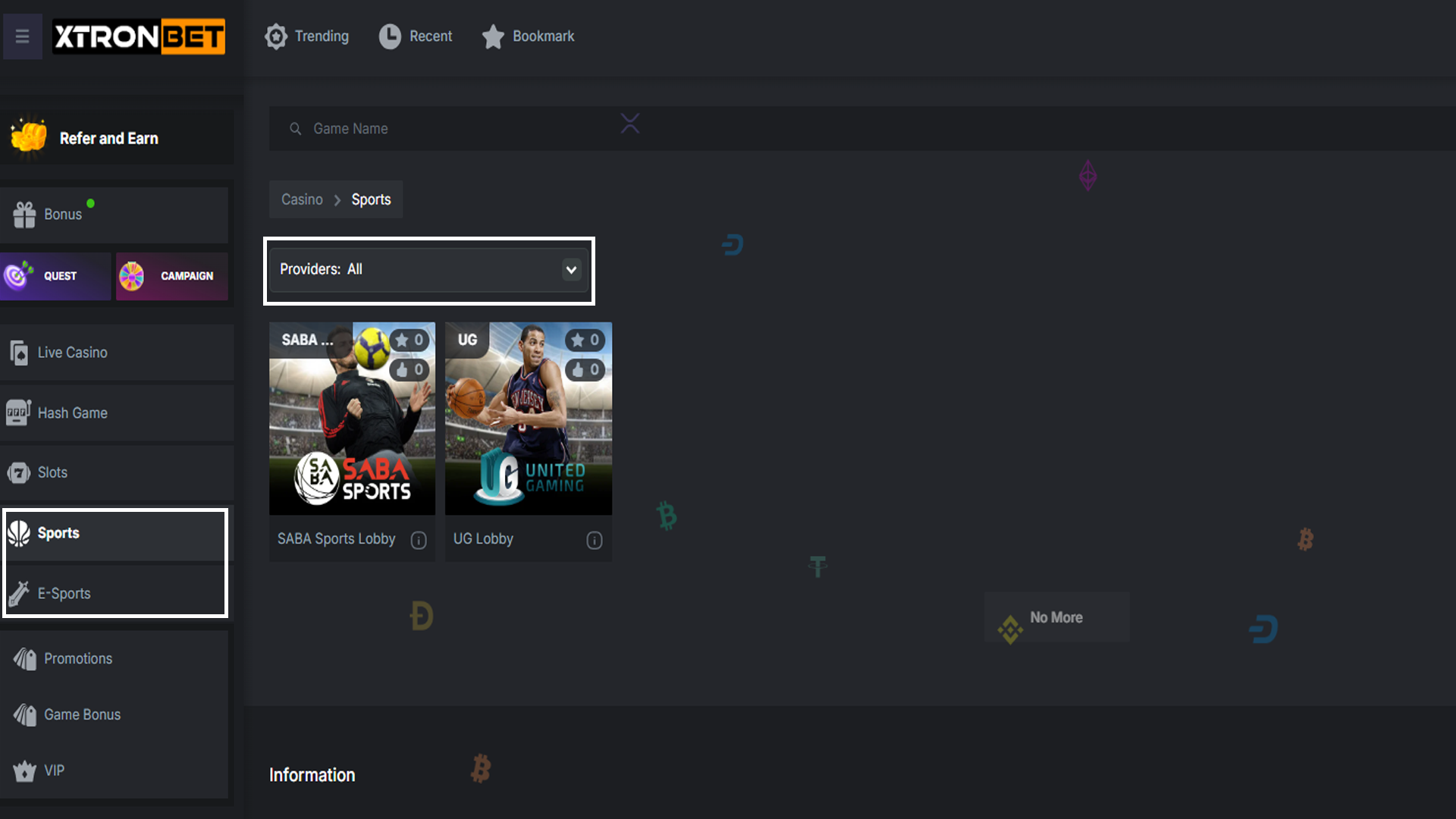Sportsbook at XTRONBET is a sports betting platform that allows players to place bets on various sports, such as football, basketball, tennis, and more. With leading providers like SABA Sports and UG, XTRONBET offers a wide range of betting markets and competitive odds, making every match more thrilling and profitable.