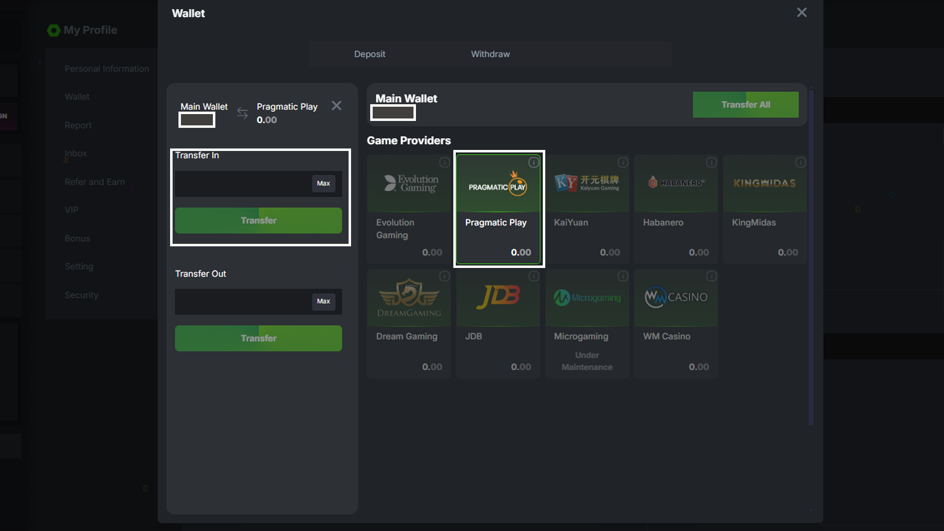 - Open Profile: Access the Wallet tab to proceed to the transfer settings.