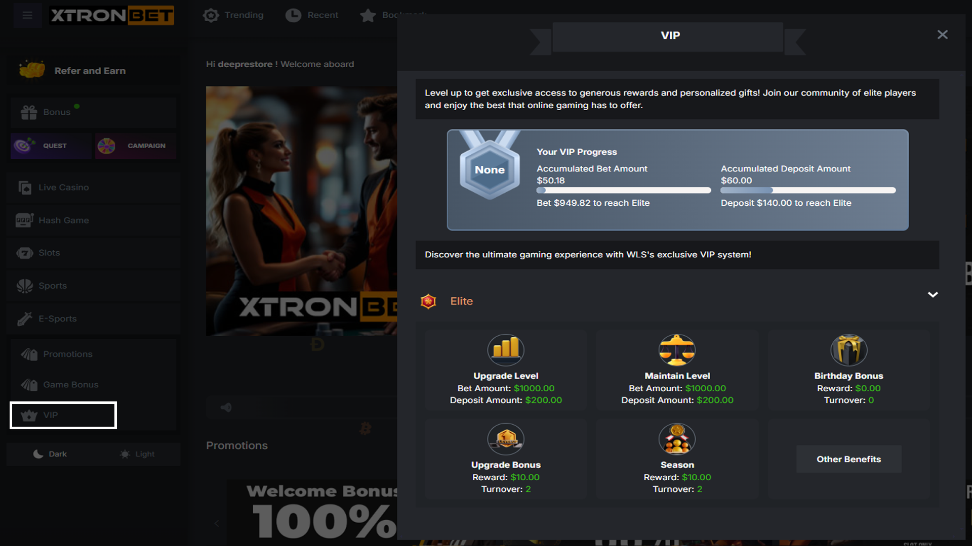 VIP Account Promotions at XTRONBET